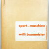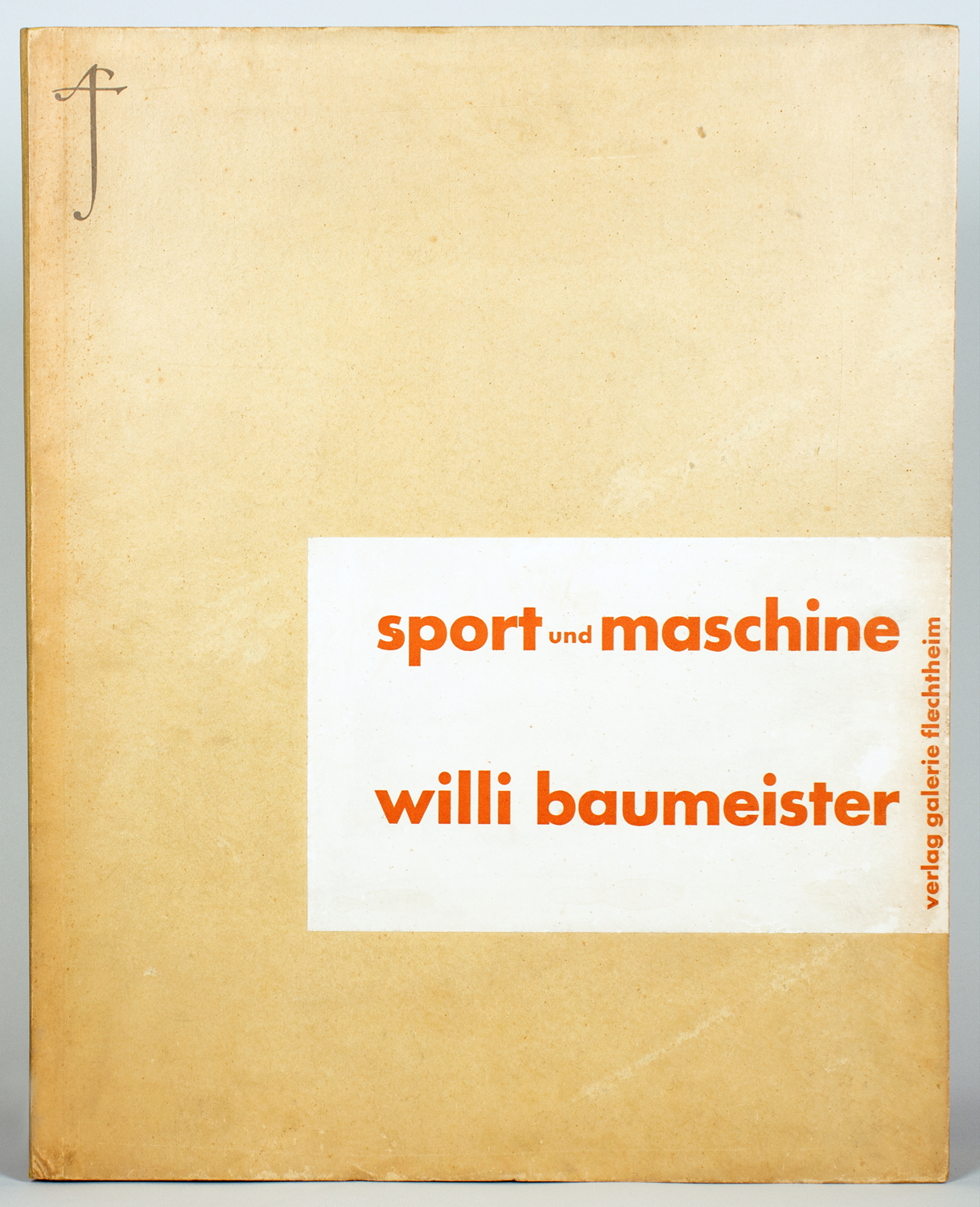 Eins von 190 nummerierten Exemplaren auf chamoisfarbenem Hadernpapier, weitere zehn erschienen auf Japan. – Auf dem Titelblatt mit dem Editionsvermerk von Baumeister signiert. – Inhalt (Titel nach Ponerts Verzeichnis der Zeichnungen aus den Jahren 1926–1928): Sport und Technik. – Hockeyspieler. – Kegelfiguren-Sportler. – Frau mit Tuch. – Mensch und Maschine. – Monteure I. – Ruhende Sportler. – Fußballspieler. – Sitzende Figur I. – Hochsprung. – Boxschule. – Tennisspieler sitzend. – Monteure III. – Fußballspieler (Torwart). – Menschen und Maschinen. – Frauen im Turnraum. – Schachspieler. – Sportler in Ruhestellung. – Maschinist. – Tennis. – Die Zeichnungen entstanden in einer Stilphase, die Dietmar Ponert als »plastischen Realismus« bezeichnet, » […] eine Strömung, die […] sich seit 1923, wie datierte Arbeiten belegen, neu bildet und zunehmend an Bedeutung gewinnt. […] Die befremdliche Parallelität von Konstruktivismus und ›plastischem Realismus‹ wird erklärbar als eigenständiger Lösungsversuch eines Problems: In der konstruktivistisch facettierten Form kann Bewegung im Raum überzeugend sichtbar gemacht werden, während eine lineare Gestaltung geschlossener Volumina und ihrer plastisch-naturalistischen Oberfläche die intendierte Bewegung gleichsam erstarren läßt: Der Körper verharrt wie leblos in der Komposition. […] Das problematische Ergebnis dieses ›Seitenwegs‹, in dem sich unbewußt vielleicht der ›Zeitgeist‹ anzukündigen schien, wurde Baumeister wohl erschreckend bewußt: Er hat deshalb selbstkritisch alle Zeugnisse, soweit er sie noch erreichen konnte, vernichtet. Deutlichstes überliefertes Beispiel bleiben die in der Mappe ›Sport und Maschine‹ von 1927 reproduzierten Zeichnungen.« (Dietmar Ponert, in: WVZ der Zeichnungen, Gouachen und Collagen, S. 27) – Der Mappe »Sport und Maschine« kommt deshalb eine enorme dokumentierende Bedeutung zu. Vollständige und so tadellos erhaltene Exemplare sind von größter Seltenheit.