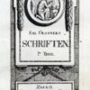Die vierte Gesamtausgabe wurde, nach der Volksausgabe von 1767, wieder luxeriös ausgestattet und »mit neuen Rad. geschmückt«. 1762 war die erste vierbändige Gesamtausgabe erschienen, deren Textauswahl und Ausstattung für die zweite und vorliegende vierte weitestgehend unverändert blieb, sieht man von jeweils neuen Radierungen und orthographischen Korrekturen ab. – Inhalt: I: »Der Tod Abels«, II: »Daphnis«, »Die Nacht«, III: »Idyllen« (III), »Evander & Alcimna«, »Erast«, »Der erste Schiffer« IV). – 1772 erschien der Band V, der weitere Idyllen, Gessners Diderot-Übersetzungen und seinen »Brief über die Landschaftsmahlerey an Herrn Fuessli« enthielt. – Gessner, der vielen als der herausragendste Schweizer Dichter im 18. Jahrhundert gilt, strebte, folgt man Karl Goedekes nicht sehr schmeichelhafter Einschätzung, »nach der Einfalt der Alten. Sein Streben galt den Zeitgenossen als Erreichen. Aber nicht das Altertum, nur ein erträumtes Bild des Altertums hatte ihn gereizt, und die Einfachheit, die er suchte, verlor sich unter süßem Getändel«. – Sehr schön erhaltenes Exemplar, sehr breitrandig und die Bände 1-4 (5 zum Teil) auf feinem festem Velin.