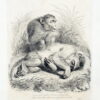 Erste Ausgabe dieser großartigen Serie von Karikaturen der Menschen in Affengestalt. – Die Radierungen mit gestochenem Text am Unterrand, häufig Zitate aus Shakespeare-Stücken, alle in der Platte signiert und mit dem Imprint des Verlegers von 1827. – Thomas Landseer (1795–1880) war der ältere Bruder des berühmten Tiermalers Sir Edwin Landseer, zu dessen Erfolg er mit seinen druckgraphischen Arbeiten beitrug. Arthur Rümann: »Technisch sind seine Radierungen meisterlich, nicht minder bewundernswert ist die geistige Beherrschung des Stoffes. Mit viel Humor und scharfer Beobachtung versetzt er das bürgerliche Leben seiner Zeit ins Affenleben. Sein Spott ist beissend, fast bösartig.« – Tadellos schönes Exemplar, das Trägerpapier für die sehr fein zeichnenden Drucke auf China sonst fast nie ohne Stockflecken anzutreffen, hier tadellos sauber. – Den vorgebundenen Originalumschlag ziert eine Variante der Titelradierung, die nun das tatsächliche Erscheinungsjahr 1828 trägt.