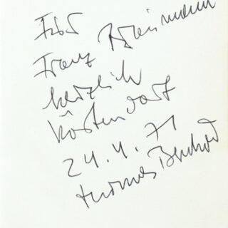 Eins von 130 nummerierten Exemplaren der Vorzugsausgabe auf Zanders-Bütten mit den signierten Radierungen, wie 95 Exemplare in Maroquin gebunden (Gesamtauflage 500). – Die Radierungen druckte Carl Sabo, Berlin, den Text die Offizin W. Drugulin, Leipzig. – »Damals begann der neue Beckmann«, schrieb Kasimir Edschmid in seinem Tagebuch, nachdem er den Künstler im Atelier seines Vetters Ugi Battenberg kennengelernt hatte. – »Aufspießen, demaskieren, entlarven, hinter den ekstatischen Wortergüssen Edschmids die seelische Situation der Menschen sichtbar machen: das ist die Aufgabe, die sich Beckmann hier gestellt hat. Leidenschaftlich und erregt, gleichermaßen gedrängt und verkürzt wie die Prosa Edschmids, radierte er seine seitengroßen Bilder« (Jürgen Eyssen, in: Buchkunst in Deutschland, S. 163). – Der Einbandentwurf stammt von Else von Guaita, der Schülerin Henry van de Veldes, dessen ornamentaler Stil in der Deckelvignette noch deutlich sichtbar ist. – Das starke Bütten unbeschnitten. – Eines der schönsten Beispiele expressionistischer Buchillustration. – »The embittered view of society that Beckmann developed during his hospital duty and subsequent nervous breakdown during World War I is reflected in prints« (Castleman). – Sehr schönes Exemplar der seltenen Vorzugsausgabe, mit späterem von Thomas Zwang passend gefertigten Schuber mit Lederkanten.