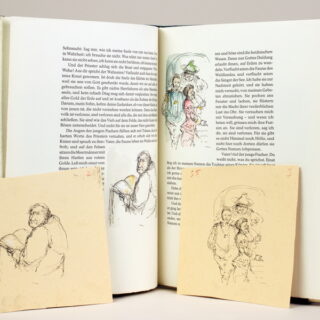 Eins von 30 nummerierten Exemplaren der zweiten Vorzugsausgabe mit einer Extrasuite aller zehn Holzschnitte auf Japan (Gesamtauflage 120). – Der Druckvermerk von Nina Kandinsky, der Witwe des Künstlers und zugleich Verwalterin seines Nachlasses, signiert. – Gedruckt bei Fequet et Baudier, die Holzschnitte von den im Nachlass befindlichen Originalstöcken druckte Duval. – Das Buch erschien als Band 50 der Reihe »Cahiers du Regard« und enthält zehn Holzschnitte, die 1913 in Kandinskys berühmtem Malerbuch »Klänge« abgedruckt waren. Sie illustrieren die französische Übersetzung seines autobiographischen Essays »Rückblicke«, der ebenfalls 1913 als Nachwort der frühen Monographie »Kandinsky 1901 – 1913« in Herwart Waldens Verlag Der Sturm Berlin erschienen war. – Makellos schönes Exemplar der sehr seltenen Luxusausgabe.