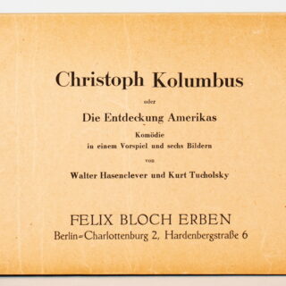 Erste Ausgabe der zweiten Veröffentlichung Tucholskys, bei der er erstmals eines seiner Pseudonyme benutzte. Auch der beteiligte Künstler Kurt Szafranski verbarg sich hinter einem Pseudonym. – Dazu: Fromme Gesänge von Theobald Tiger. Mit einer Vorrede von Ignaz Wrobel. [Berlin-]Charlottenburg, Felix Lehmann 1919. Farbig illustrierte Originalbroschur. Erste Ausgabe.