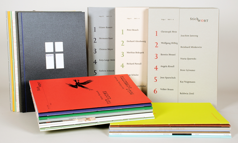 Vollständige Folge aller 21 erschienenen Hefte. Die Reihe, herausgegeben vom Leipziger Bibliophilen-Abend und Herbert Kästner, bildete die inhaltliche Fortsetzung der noch zu DDR-Zeiten erschienenen Serie »24 x 34«. – Meist Erstdrucke der Texte. – Erschienen in jeweils 100 arabisch und 20 römisch nummerierten Exemplaren, hier meist Exemplar II (7 Hefte abweichend). – Alle Druckvermerke von den Autoren und Künstlern signiert, fast alle Originalgraphiken signiert. – Auf verschiedenen Papieren und in jeweils eigener, ausführlich erläuterter Typographie gedruckt. – Mit Texten von Christoph Hein, Wolfgang Hilbig, Jens Sparschuh, Volker Braun, Gerhard Altenbourg, Günther Kunert, Rolf Hochhuth und anderen und Graphiken von Joachim Jansong, Nuria Quevedo, Baldwin Zettl, Karl-Georg Hirsch, Horst Hussel, Rolf Kuhrt u.v.a. – Die vollständige Auflistung in unserem Online-Katalog. [Folge I: Christoph Hein. Keine Umarmung, kein Gezeter. 2002. Graphik von Joachim Jansong. – Wolfgang Hilbig. Anfang Ende. 2002. 3 Radierungen von Reinhard Minkewitz. – Kerstin Hensel. Das Licht von Zauche. Kapriolen.2003. 2 Radierungen von Nuria Quevedo. – Angelika Krauß. Orte. 2003. Farbige Aquatinta von Peter Sylvester.– Jens Sparschuh. Vom Tisch! 2004. Neun Abbildungen, 2 Kupferstiche von Kay Voigtmann. – Volker Braun. Das Mittagsmahl. 2004. 3 Kupferstiche von Baldwin Zettl. – Rainer Kirsch 70. Sonderheft 2004. Holzschnitt von Karl-Georg Hirsch, Schablithographie von Rolf Münzner, Aquatintaradierung von Volker Stelzmann. – Folge II: Peter Brasch. Versuche. 2005. 2 Holzschnitte (unsigniert) von Karl-Georg Hirsch. – Gerhard Altenbourg. Briefe an Horst Hussel. 2005. Mit Abbildungen. Radierung von Horst Hussel. – Matthias Biskupek. Aufstellung. 2006. 3 Farbserigraphien (unisgniert) von Thomas M. Müller. – Richard Pietraß. Wiegeschritt. 2006. 4 Radierungen von Hanif Lehmann. – Ingo Schulze. Mein zweiter Mantel. 2007. Gefalteter Farbholzschnitt von Hartwig Ebersbach. – Thomas Rosenlöcher. Das Bäumel. 2007. Illustrationen (unsigniert) von Gerda Raidt. – Andreas Reimann. Neue Gedichte. Sonderheft 2006. Je eine Radierung von Akos Novaky, Peter Sylvester und Baldwin Zettl. – Folge III: Günter Kunert. Nächtlings abseits. 2008. 2 Radierungen von Günter Kunert. – Hermann Kant. Kennung. 2008. Holzstiche von Karl-Georg Hirsch (unsigniert). – Clemens Meyer. Treffpunkt. 2009. 6 Linolschnitte von Stefanie Schilling (unsigniert). – Katja Lange-Müller. Pan Leszek Birezin, der Hund Kuballa und die schwarze Madonna von Tschenstochau. 2009. Illustrationen und 1 Acrylstich von Bettina Haller. – Kathrin Schmidt. Du sagen. Dir schreiben. 2010. 3 Radierungen von Madeleine Heublein. – Rolf Hochhuth. Warum ein Elser-Denkmal – und wo? 2010. Radierung von Rolf Kuhrt. – Alle tadellos erhalten.