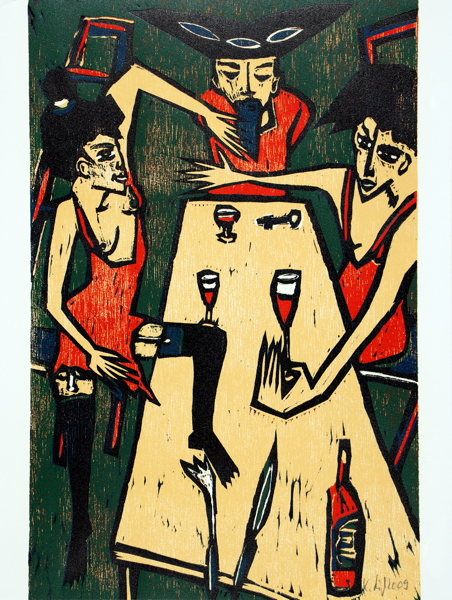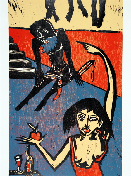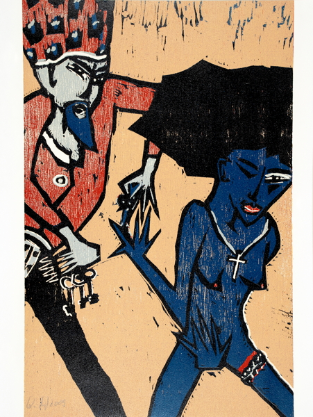 19. Leipziger Druck. – Das erste von 30 römisch nummerierten Künstlerexemplaren, wie die zehn Vorzugsexemplare mit signierten und einem zusätzlich beigelegten Farbholzschnitt (Gesamtauflage 180). – Druckvermerk von Künstler und Buchgestalter (Thomas Glöß) signiert. – Getrüffeltes Exemplar mit einer signierten Extrasuite aller sieben Holzschnitte, diese in Flügelmappe und zusammen mit dem Buch im Halbleinenschuber. – Enthält den Text von Charles Perrault, die Satire von Friedrich dem Großen und Peter Rühmkorffs Parodie »Blaubarts letzte Reise«. – Die Holzschnitte wurden in der Technik der verlorenen Form gedruckt, wobei die Stöcke schrittweise überarbeitet und für jede Farbe erneut verwendet werden. Nach Ausdruck der Auflage werden die Stöcke vernichtet. – Das farbenprächtige Künstlerbuch, als Blockbuch gedruckt und gebunden, wurde als eines der »Schönsten deutschen Bücher des Jahres 2009« gekürt.