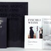 Frühe Publikation zur Ausstellung in der Kunsthalle Basel und dem Groninger Museum im Frühjahr 1985. – Dabei: Patrick Frey. Ein ruheloses Universum. Zu den gemeinsamen Arbeiten von Peter Fischli und David Weiss. Katalog zur obigen Ausstellung. – Bericht über den künstlerischen Schmuck im Neubau der Börse Zürich im Auftrag des kantonalen Hochbauamtes und des Effektenbörsenvereins 1992. Fotografiert von Niklaus Spoerri. Herausgegeben von Hans-Ulrich Obrist. [Zürich], Oktagon 1995. Mit mehr als 50 Farbabbildungen. Auf dem Vorsatzblatt von beiden Künstlern signiert. – Dazu drei weitere Publikationen: Fragen & Blumen. Kunsthaus Zürich 2007. – Sonne, Mond und Sterne. Zürich JRP Regnier [2007]. Mit zahlreichen Plakatabbildungen. – Are Animals People? Madrid 2009.