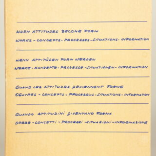 3: John Battan (Matta)*, Aftograf, Enrico Baj, William Bryant, Dick Higgins, Joseph Kosuth, Ronnie Landfield, Roland Penrose, Man Ray, H. C. Westermann, Hannah Weiner, Terry Riley.